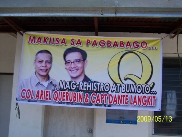 Querubin’s and Langkit’s streamer reminds me of the story of Edong Ermita when he first ran for Congress.
